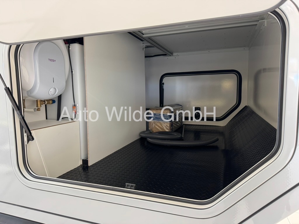 – Die Kabine hat 40 mm Wand- und Deckenstärke, 1,5 mm GFK innen /außen, 37mm PET Schaum RG 50, Boden 79,5 mm